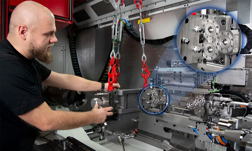 VX machines can be equipped with one or two interchangeable grinding spindles, allowing up to six grinding wheels to be used simultaneously. This makes it possible, for example, to grind multiple gears in a single set-up. Additional carriers for grinding arms can also be mounted on the same interfaces to machine internal gears. Both dressable and non-dressable CBN roughing and finishing tools from KAPP NILES can be used. Equipping the optional zero-point clamping system, set-up times for grinding spindles and additional grinding heads can be reduced by 85 per cent.